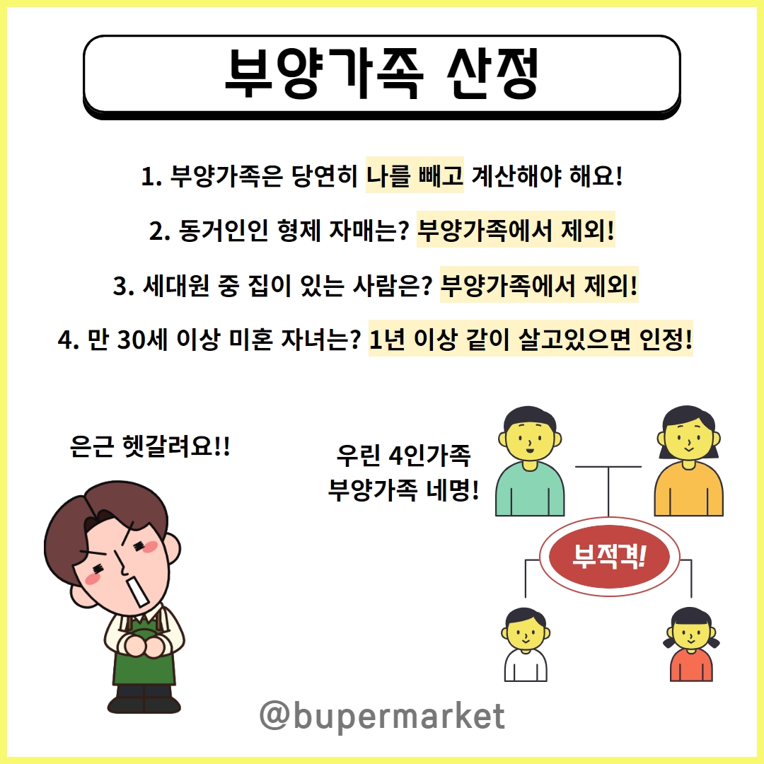 그리고 자녀는 만30세 이상이라면 1년 이상 함께 살고 있어야지 부양가족으로 인정됩니다.
